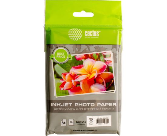Фотобумага Cactus CS-GA618050ED A6/180г/м2/50л/белый глянцевое для струйной печати