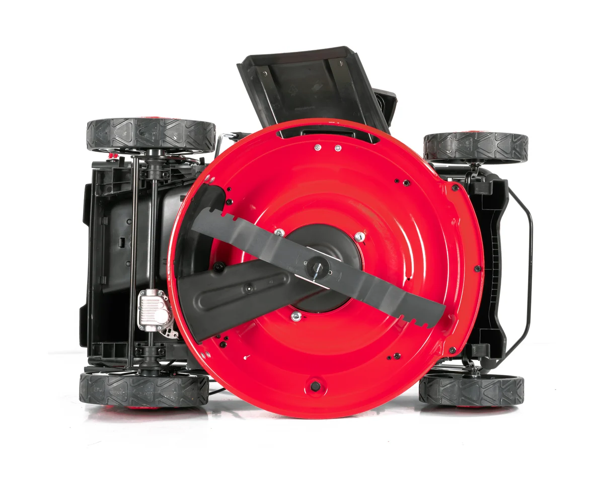Газонокосилка имеет функцию мульчирования, что способствует улучшению состояния газона. Корпус из стали и пластика обеспечивает долговечность и устойчивость к внешним воздействиям. Вместительный травосборник объемом 45 литров позволяет работать продолжительное время без частой очистки. Регулируемая и складная ручка обеспечивает удобство в эксплуатации и хранении. Боковой и задний выброс травы делают использование устройства более гибким.