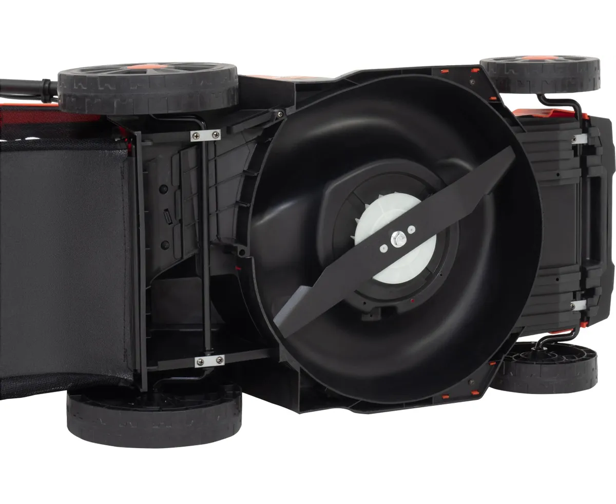 По сравнению с бензиновой, эта электрическая газонокосилка тише в работе, легче по весу, не требует топлива, не источает неприятных запахов: отличный выбор для регулярного ухода за газоном на участках, где соседи живут близко друг к другу.