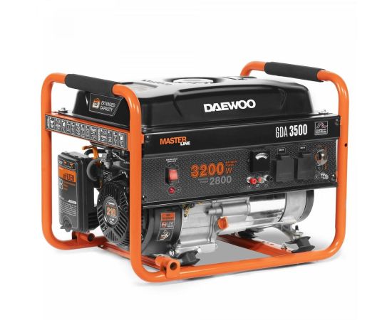 Daewoo GDA 3500 задействует в работе стабилизацию напряжения AVR. Корпус прибора содержит две розетки 220В/16А. Оборудование с емкостью топливного бака 18 л предусматривает ручной запуск. Во включенном состоянии уровень шума электрогенератора соответствует 69 дБ.Он весит 37 кг и содержит выступающие элементы, обеспечивающие комфортную транспортировку аппарата.