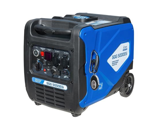 Бензогенератор инверторный SGG 5000ESi в шумопоглощающем кожухе, с электростартом и разъемом для подключения блока автоматики, вырабатывает электричество высокой точности частоты и напряжения.