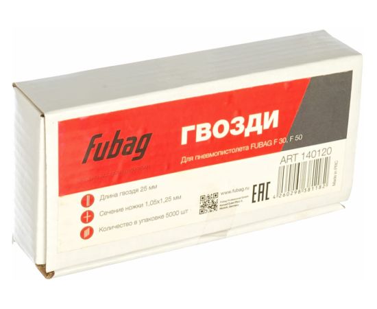 Гвозди Fubag 140120 предназначены для гвоздезабивателей F30/F50, которые применяют при монтажных работах, например, для соединения различных элементов при сборке каркасных изделий.