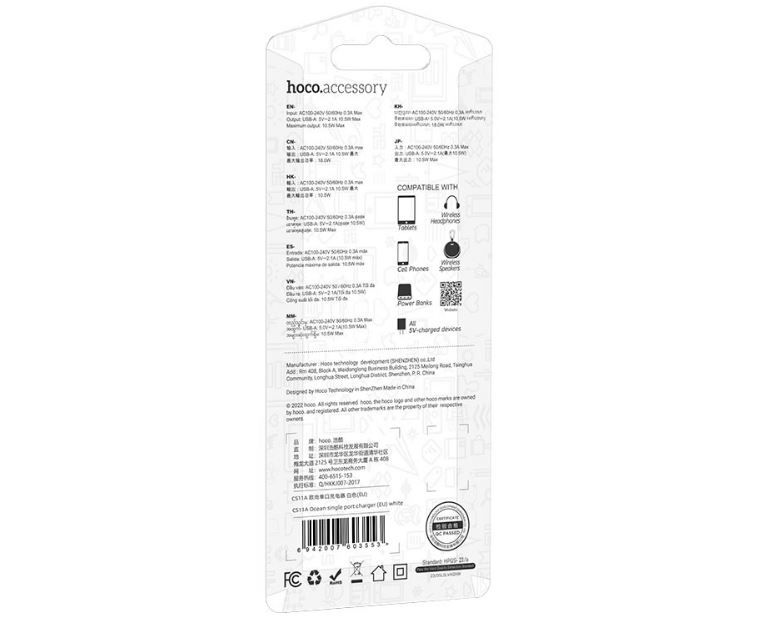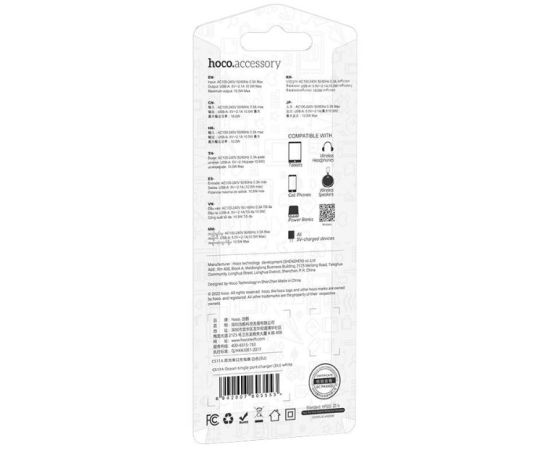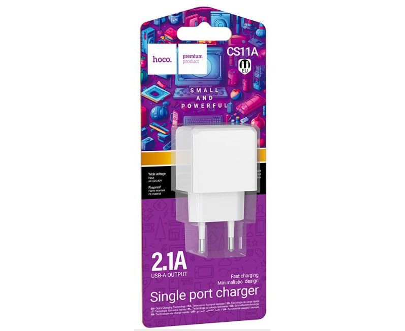 Hoco CS11A зарядное устройство с одним USB-A 5V / 2.1A портом.