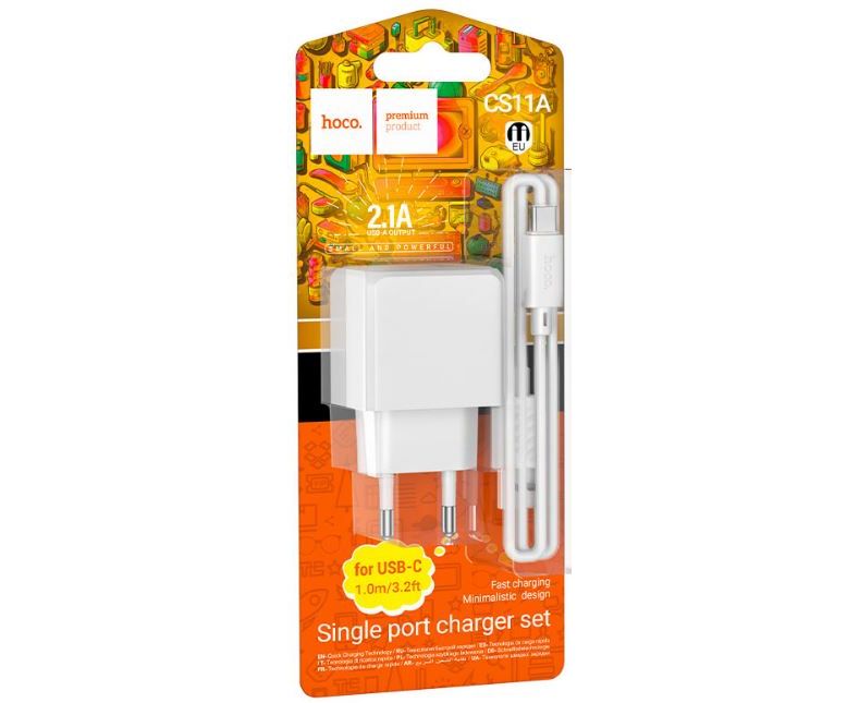 Сетевое зарядное устройство HOCO CS11A/ СЗУ + Кабель Type-C 1m/ 1 USB/ Выход: 10.5W/ Белый