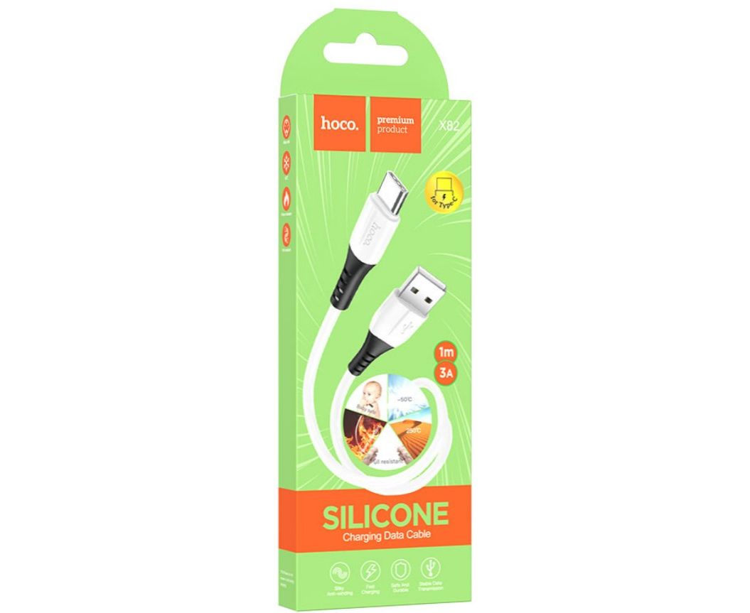 Кабель HOCO X82/ USB Type-C/ 1m/ 3A/ Силикон/ Белый