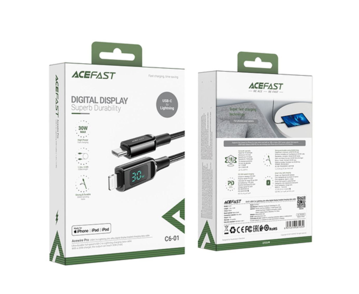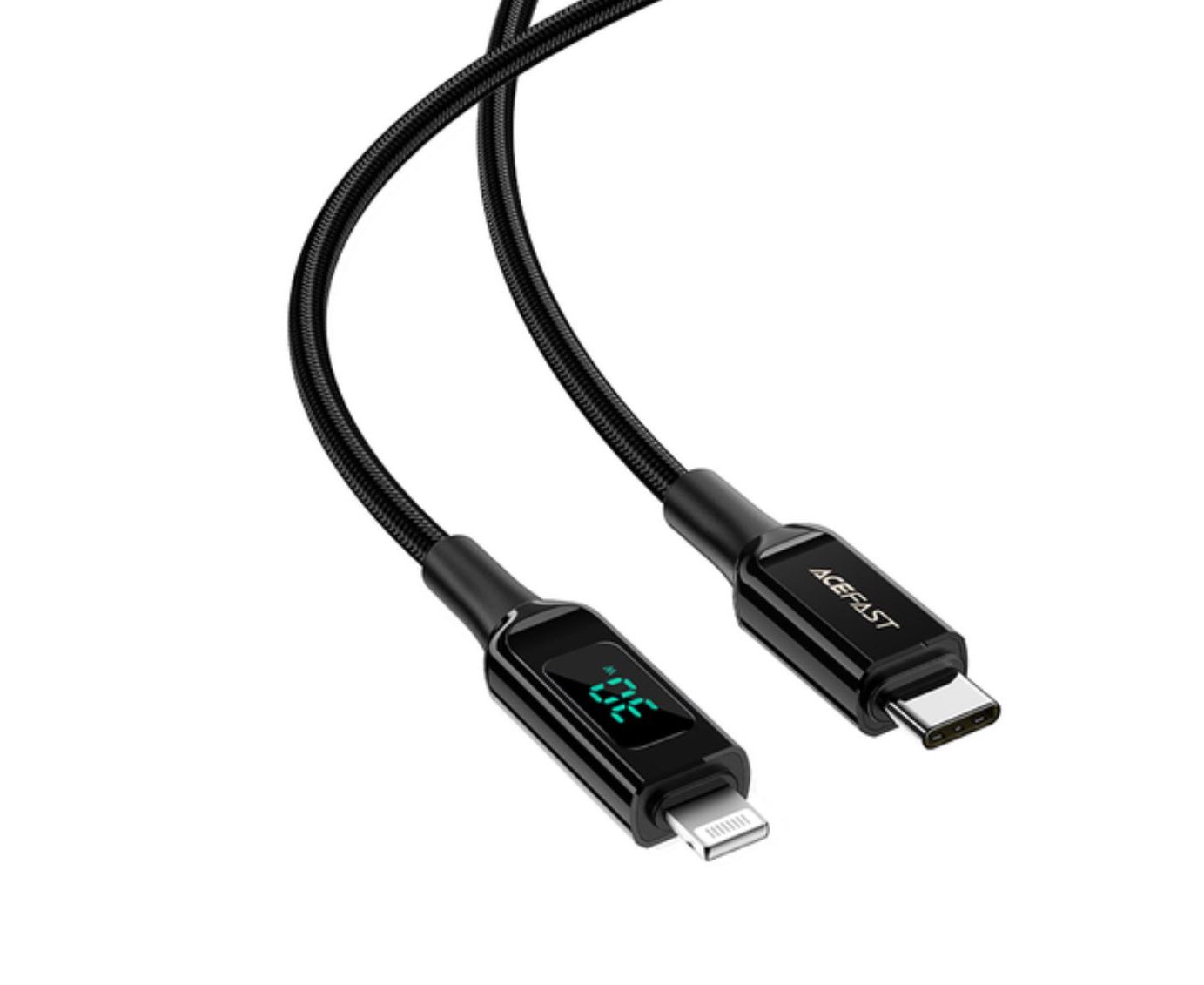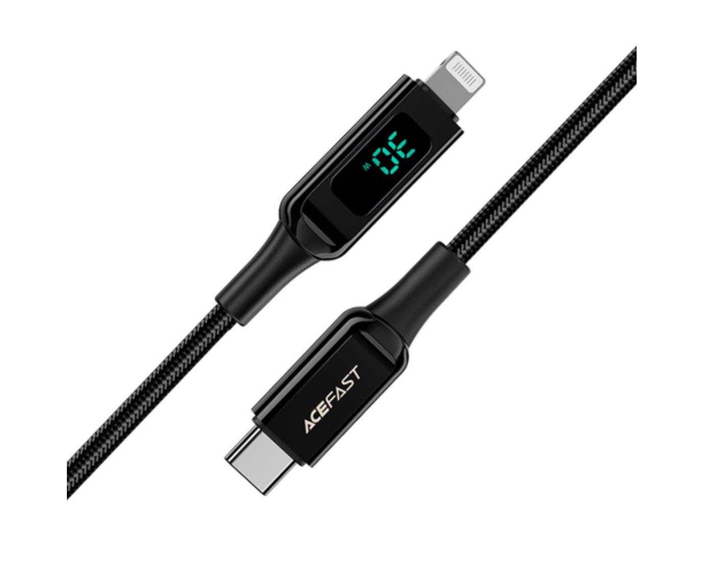 Кабель ACEFAST C6-01 USB-C to Lightning charging data cable с цифровым дисплеем. Цвет: черныйДлина: 1,2 м; вес: 45г.