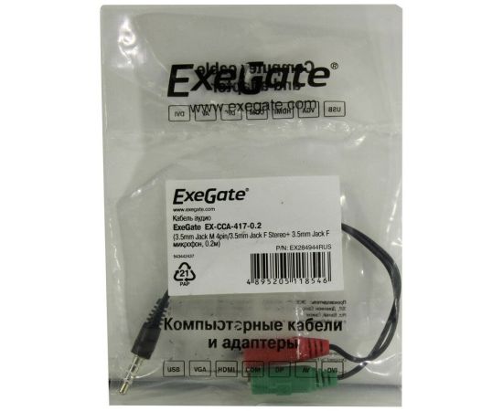 Кабель аудио ExeGate EX-CCA-417-0.2 EX284944RUS 3.5mm Jack M 4pin/3.5mm Jack F Stereo+3.5mm Jack F микрофон 0,2м