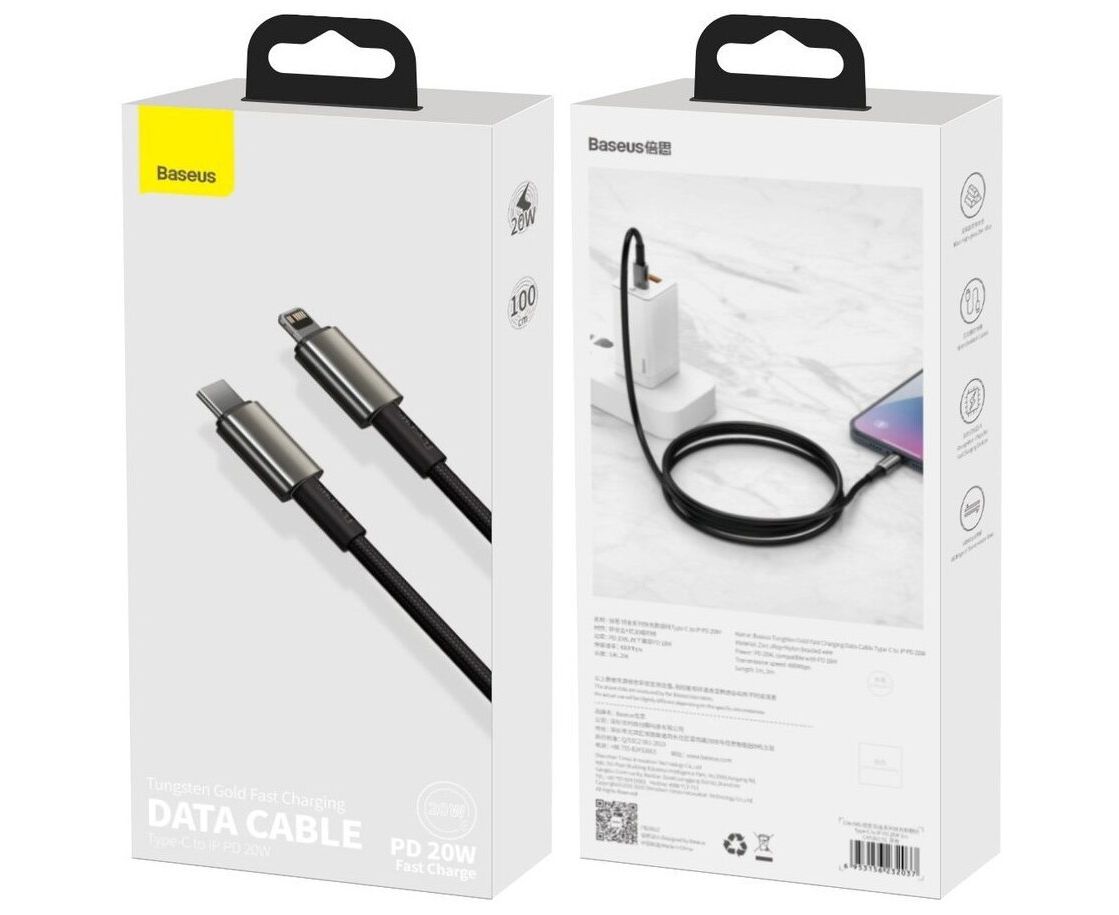 Baseus Tungsten Gold Fast Charging подойдет для быстрой подзарядки как iPhone, так и iPad. Он поддерживает технологию Power Delivery и может использоваться для зарядки гаджетов с выходной мощностью до 20 Вт, в том числе совместим с 18 Вт зарядными устройствами. Кроме того, эта модель подходит для синхронизации смартфона: сможете, пока заряжаете аккумулятор телефона, перебросить с него важные файлы на компьютер и наоборот. В комплекте к нему идет удобный ремешок на липучке для компактного хранения.Кабель поддерживает режим быстрой зарядки с выходной мощностью до 20 Вт. С его помощью вы сможете зарядить батарею iPhone с нуля до 60 процентов за 30 минут. Вам больше не придется бесконечно ждать, когда же ваш телефон будет опять готов к использованию. С таким проводом зарядка будет занимать несколько мгновений.
