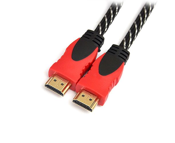 Кабель DeTech HDMI A-A v1.4, 2 феррита, нейлоновая оплётка, красно-черный цвет, 20м