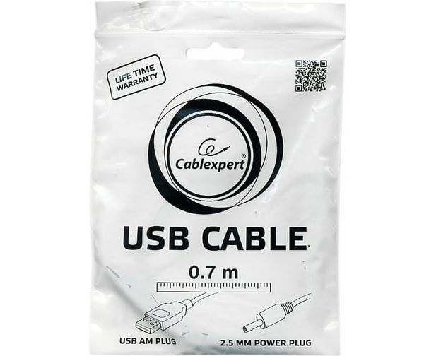 Кабель Gembird/Cablexpert CC-USB-AMP25-0.7M AM/DC 2,5мм 5V 2A для планшетов Android 0.7м черный