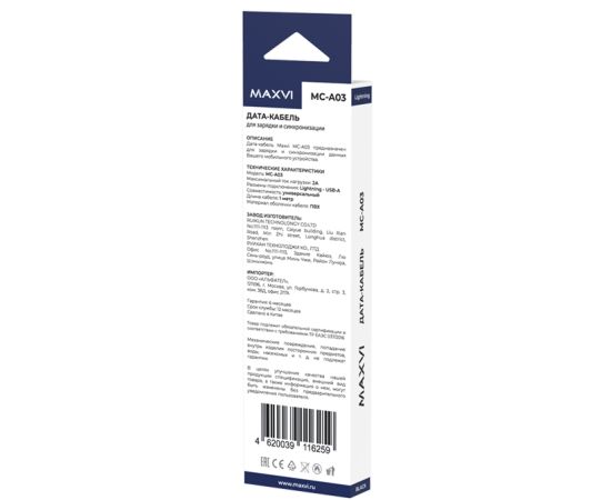 Кабель Maxvi MC-A03 black USB-A-Lightning