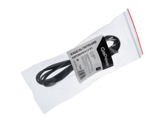 Кабель питания GoPower евровилка-c7 (2-pin) 1.8м пвх 0.75мм черный предназначен для подключения устройств для разъемом CEE C7 (компьютеров, активного сетевого оборудования, блоков питания и другого электрооборудования) к бытовым и производственным электрическим сетям, напряжением 220 В.