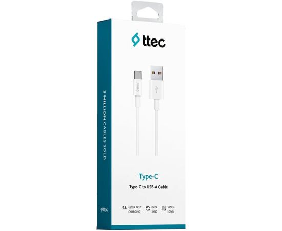 Кабель TTEC 2DK35B USB-C To USB-A 5A Extra Fast Cable,длина 100см белый