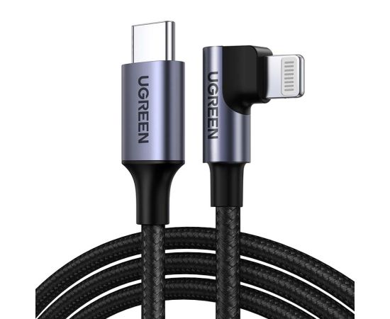 Кабель угловой US305 (60763) UGreen USB-C to Lightning Angled Cable Aluminum Shell Braided 1 м черный