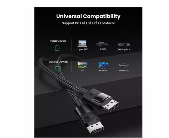 Кабель UGREEN DP114 80390 DP 1.4 Male to Male Plastic Case Braided Cable 1m