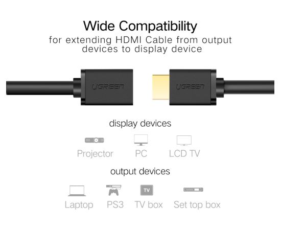 Кабель UGreen HD107 (10141) HDMI Male to Female Cable в оплетке 1 м черный