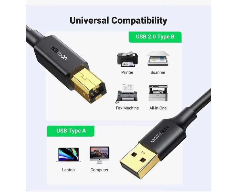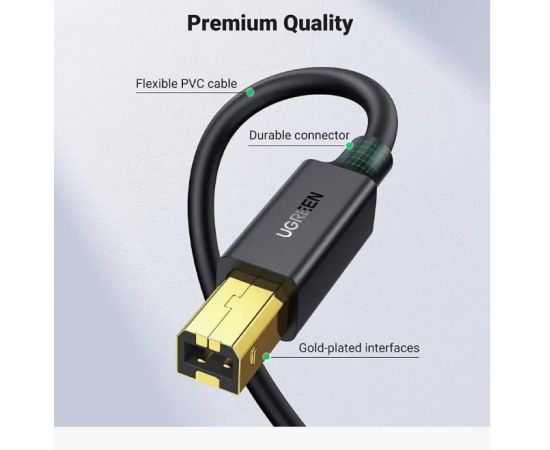 Кабель UGREEN US135 10351 USB 2.0 AM to BM Print Cable 3m Black