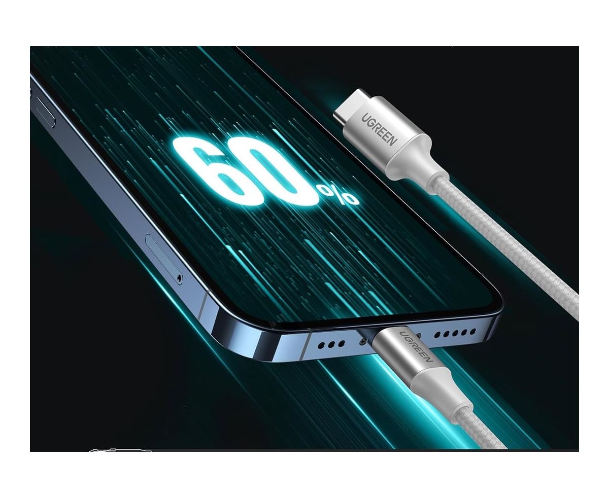 Кабель UGREEN US304 70523 USB-C to Lightning M/M Cable Aluminum Shell Braided 1m Silver