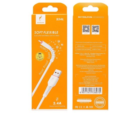 Кабель USB - Apple lightning SKYDOLPHIN S54L 100см 2,4A (white) (206489)