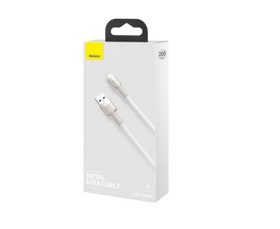 Кабель USB - Lightning Baseus Cafule Series Metal Data Cable 2.4A 2m, нейлон , CALJK-B02 (White)