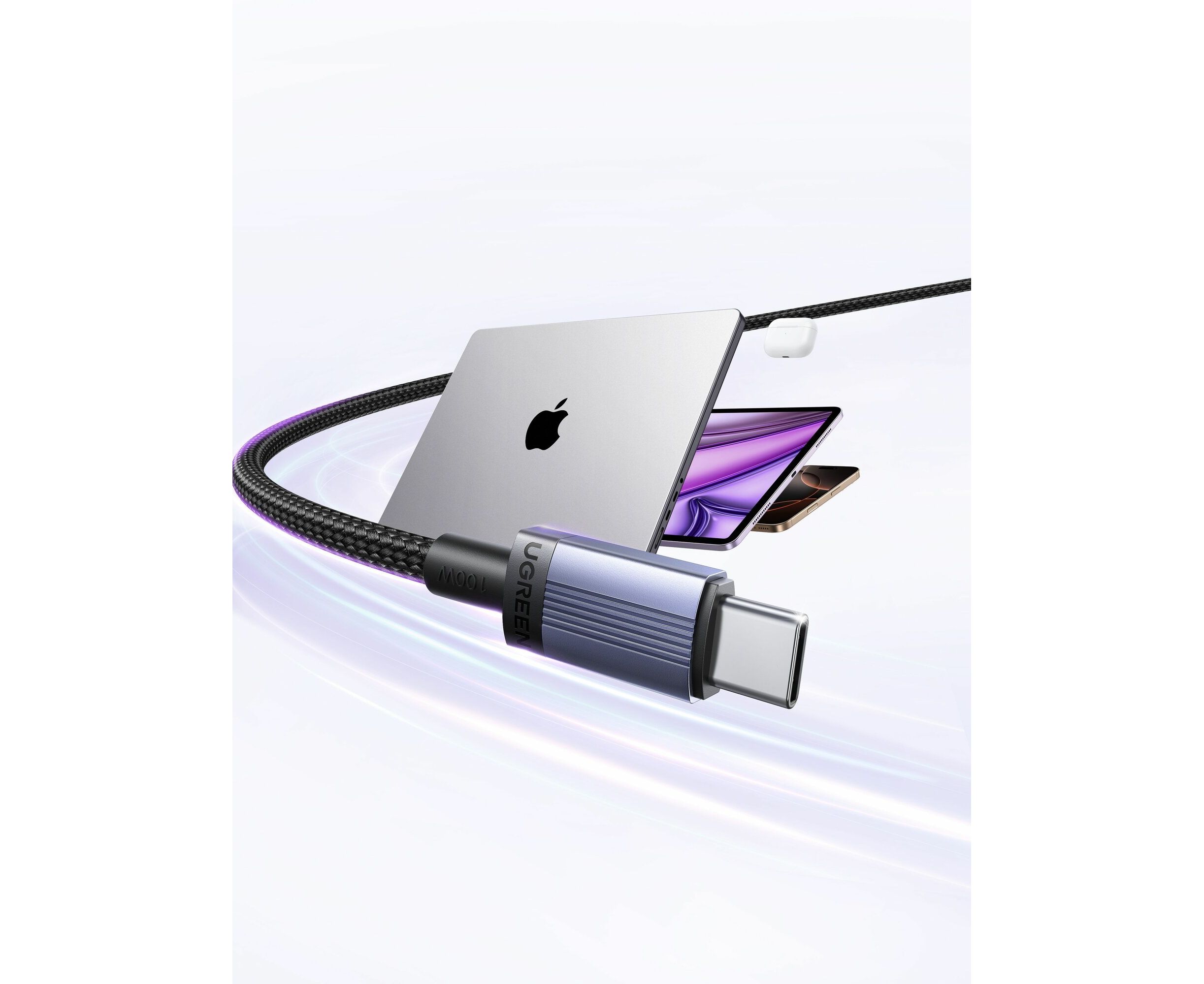 Ugreen L528 — премиальный USB‑C на USB‑C кабель длиной 3 метра цвета Space Gray с алюминиевыми коннекторами и прочной нейлоновой оплёткой.