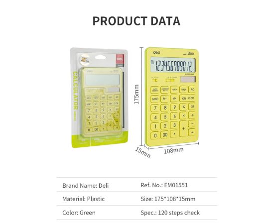 Калькулятор настольный Deli Touch EM01551 желтый