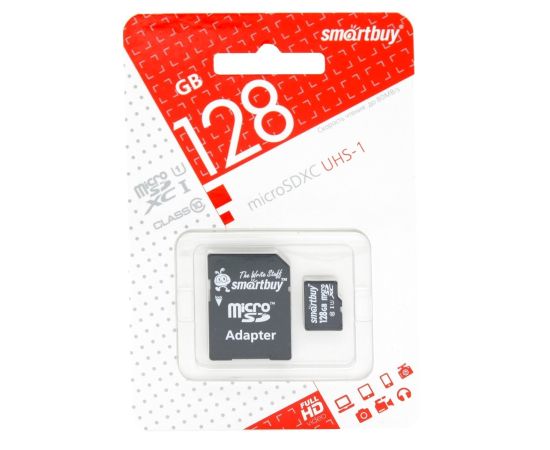 Карта флэш-памяти MicroSD 128 Гб Smart Buy +SD адаптер (class 10)