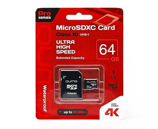 Карта флэш-памяти MicroSD 64 Гб Qumo +SD адаптер Pro seria UHS-1 U3