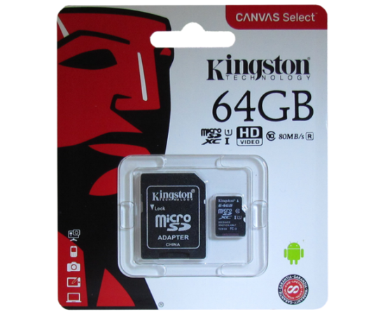Карта памяти Kingston microSDXC 64GB UHS-I Class 10 U1 A1 Canvas Select Plus 100MB/s (SDCS2/64GBSP)