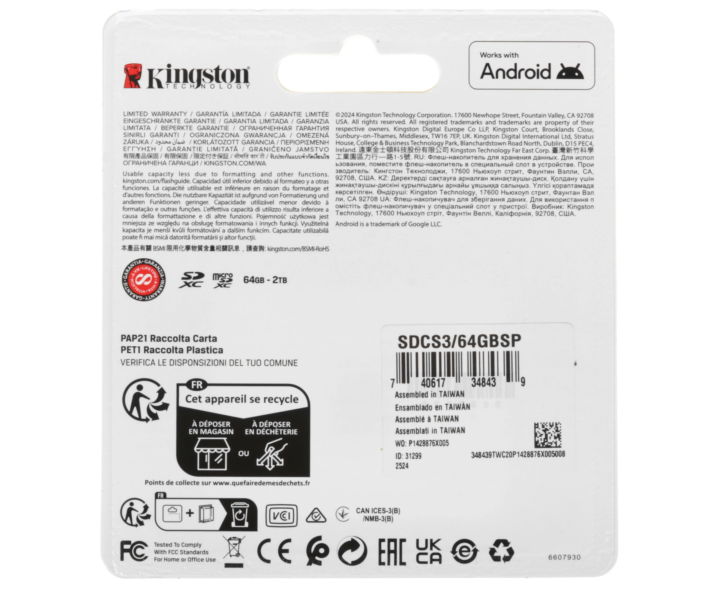 Карта памяти Kingston microSDXC 64 ГБ [SDCS3/64GBSP] рассчитана на использование в широком температурном диапазоне – от -40 до 85 °C. Максимальная скорость передачи данных – 100 МБ/с.