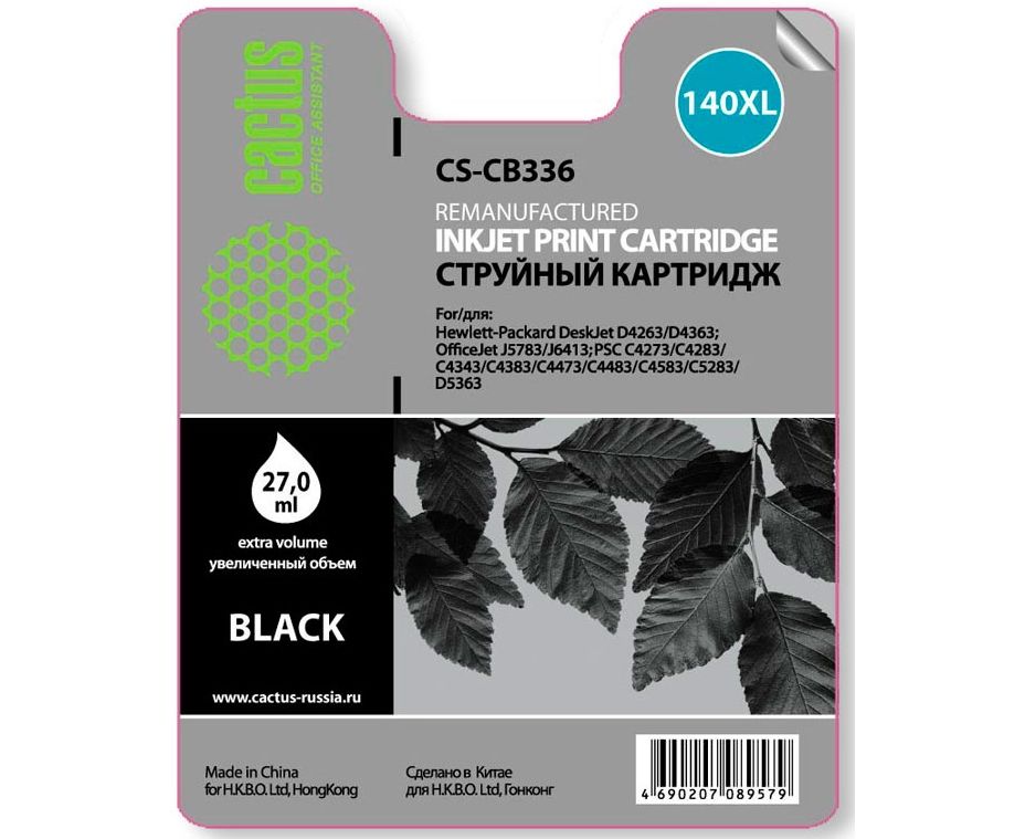 Картридж Cactus CB336HE (CS-CB336) №140 XL для DeskJet D4263/D4363; OfficeJet J5783/J6413, (черный)