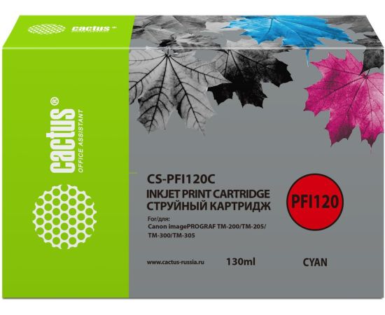 Картридж Cactus PFI-120C (CS-PFI120C) струйный голубой (130мл) для Canon imagePROGRAF TM-200/TM-205/TM-300/TM-305