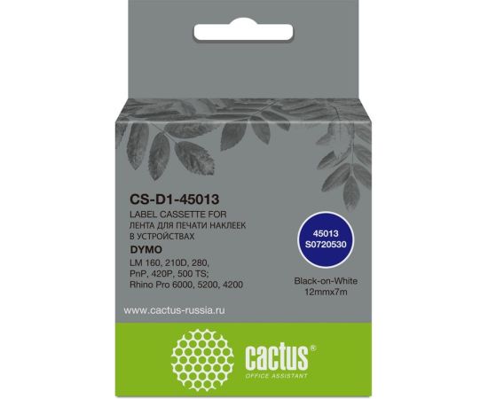 Картридж ленточный Cactus CS-D1-45013 45013 для Dymo LM 160/210D/280/PnP/420P/500 TS; Rhino Pro 6000/5200/4200