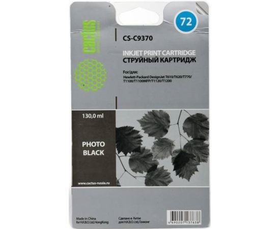 Картридж струйный Cactus CS-C9370 №72 черный (130мл) для HP DJ T610/T620/T770/T1100/T1100/T1120/T1200