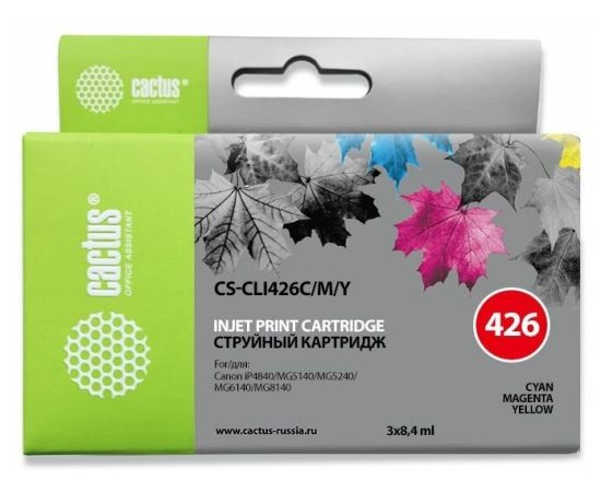 Картридж струйный Cactus CS-CLI426C/M/Y многоцветный для Canon Pixma MG5140/5240 (8,2ml) Комплект цв
