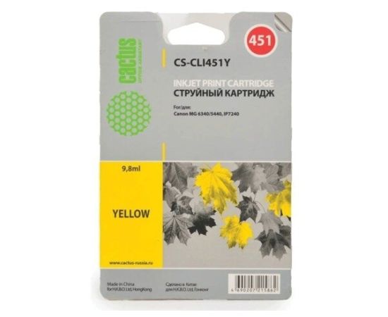 Картридж струйный Cactus CS-CLI451Y желтый для Canon MG 6340/5440/IP7240 (9,8ml)