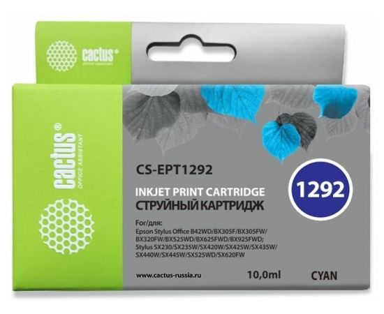 Картридж струйный Cactus CS-EPT1292 голубой для Epson Stylus Office B42/BX305/BX305F (10ml)
