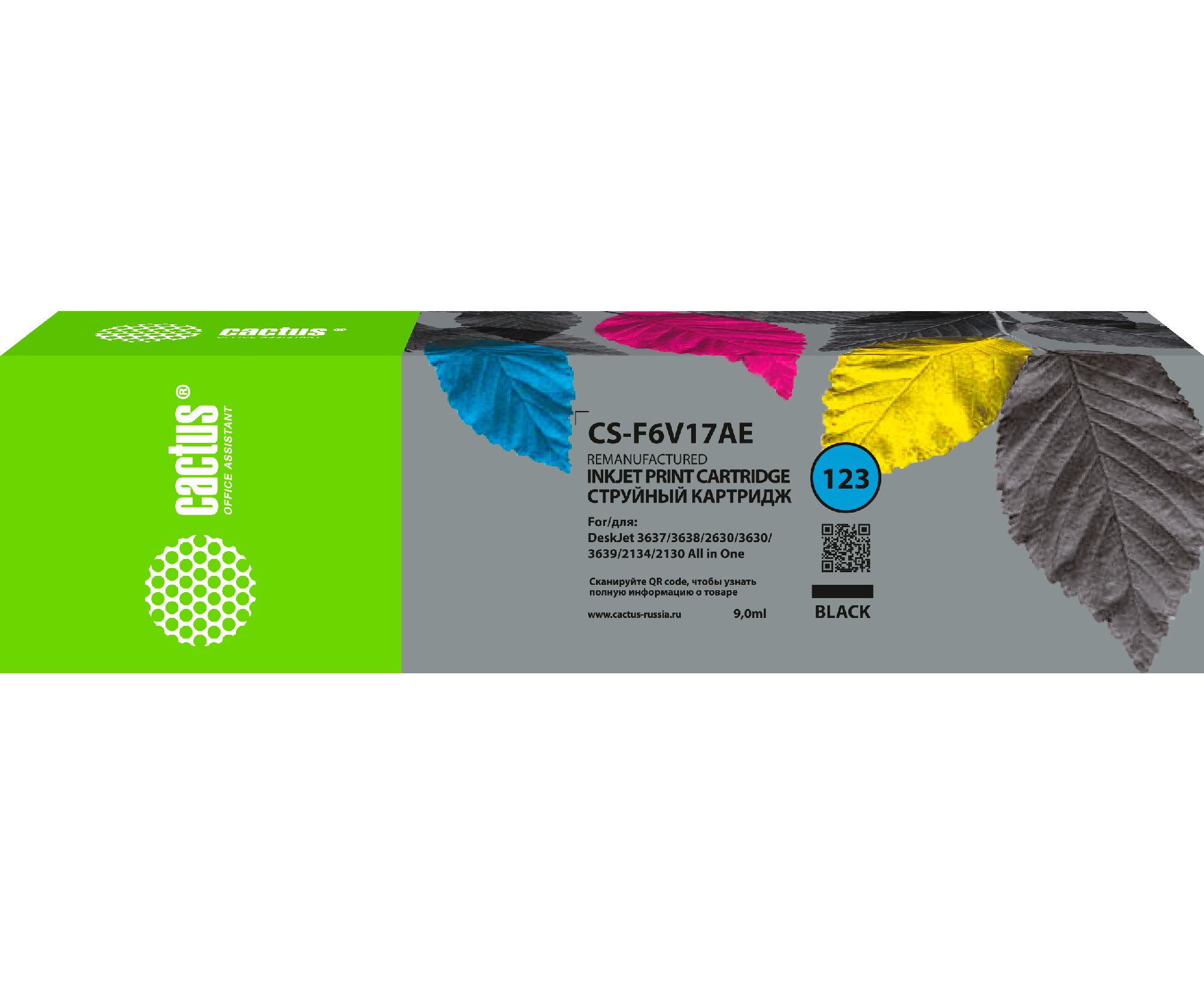 Картридж струйный Cactus CS-F6V17AE №123 черный 9мл для HP HP DeskJet 2130