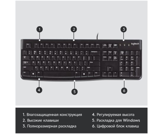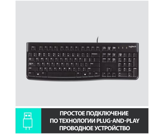 Клавиатура Logitech® K120. Эта модель гарантирует повышенное удобство при вводе текста и рассчитана на длительный срок эксплуатации. Плоские клавиши обеспечивают комфортный и бесшумный ввод текста, а стандартная раскладка с полноразмерными функциональными клавишами и цифровым блоком создают дополнительное удобство.