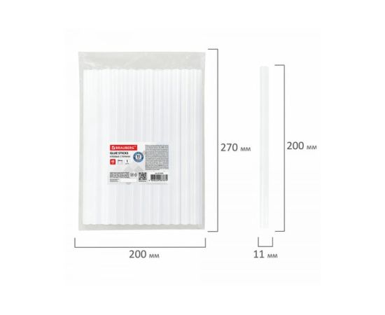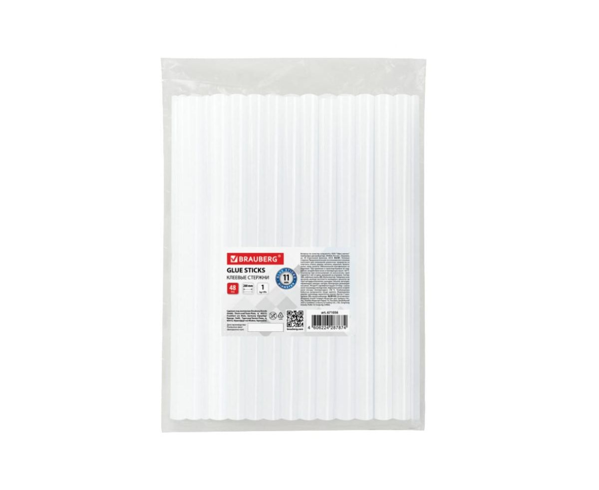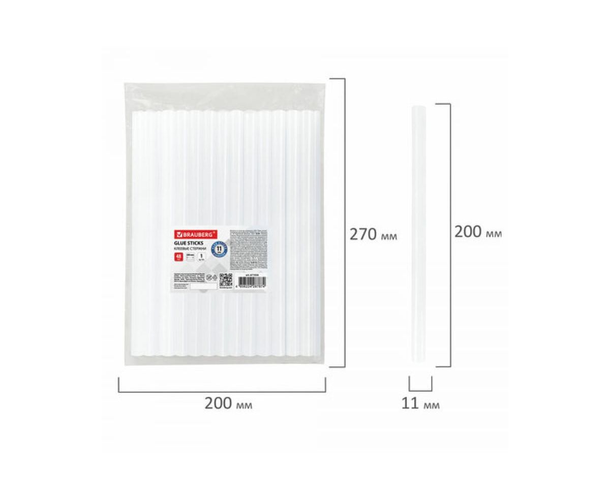 Клеевые стержни BRAUBERG 671056 диаметр 11мм, длина 200мм, прозрачные, 1кг., 48 штук,