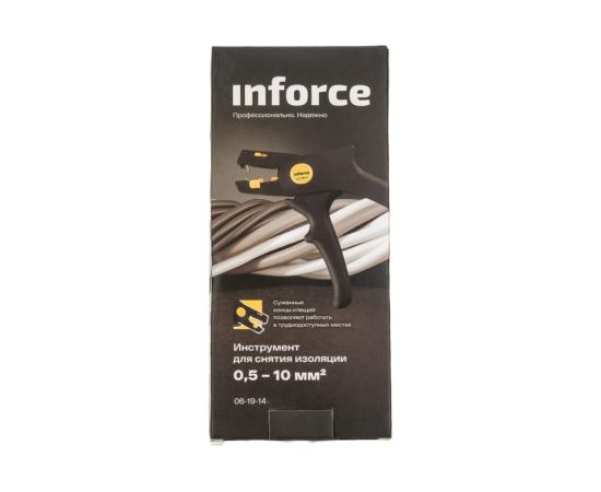 Инструмент для снятия изоляции Inforce 0,5-10 мм2 06-19-14 служит для зачистки изоляции различных типов. Предназначен для работы с моножильными проводами диаметром до 3.5 мм.