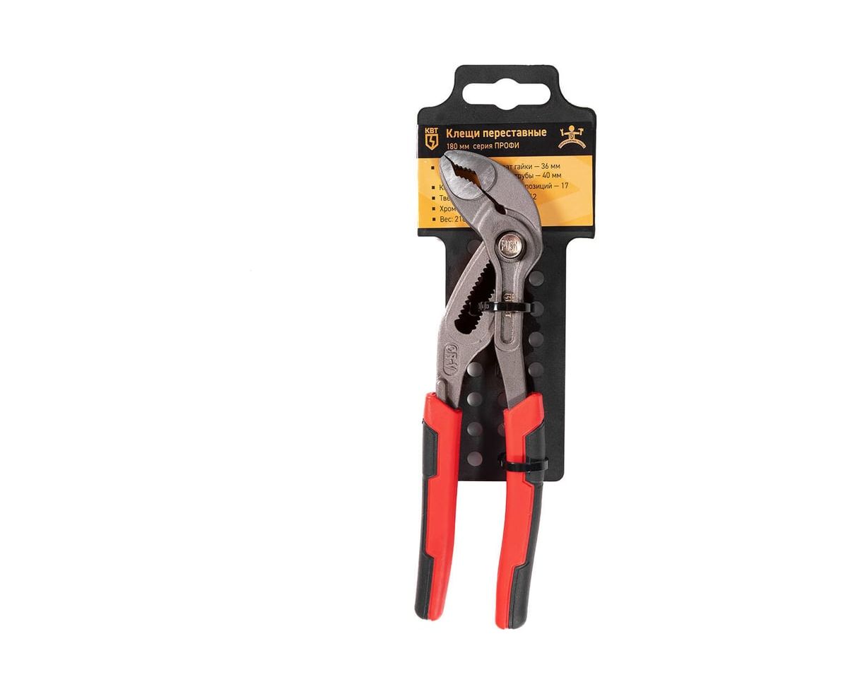 - Переставные клещи КВТ Профи 180 мм 81767 имеют раскрыв губок 40 мм