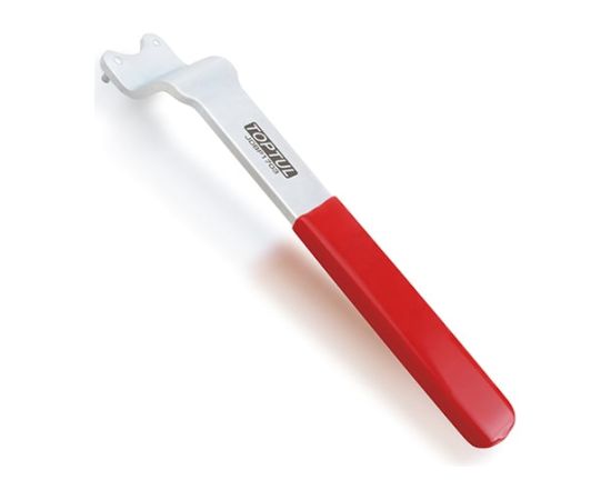 Ключ для регулировки ролика натяжителя ремня. Стальная конструкция с двумя шпильками для удержания натяжного ролика. Диаметр шпильки – 3 мм. Предназначен для регулировки ролика натяжителя ремня распредвала. Подходит для автомобилей VW, AUDI и др.
