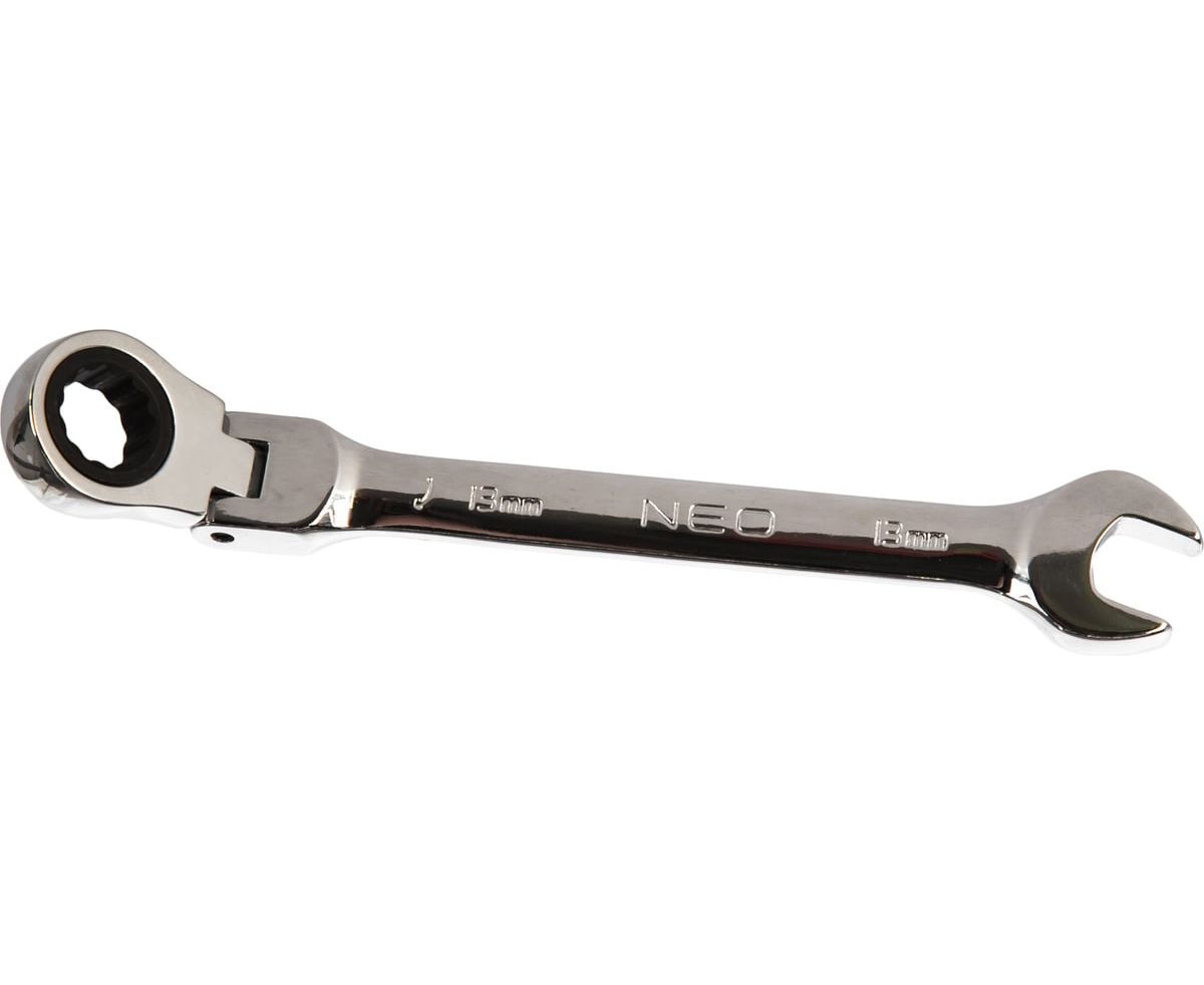 Комбинированный ключ с трещоткой NEO 13x185 мм 09-055 удобен в использовании со сложным крепежом, расположенным в труднодоступном месте или под углом.