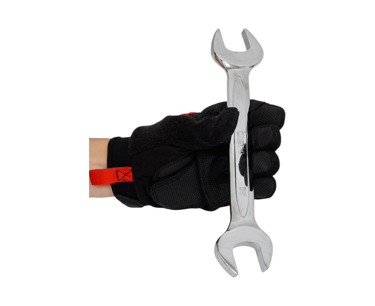 Двухсторонний ключ с открытым зевом 25x28мм NEO 09-825 незаменим при монтажных работах. Позволяет откручивать и закручивать крепеж с шестигранной головкой. Устойчивость к ржавлению и деформации обеспечена высококачественной хромованадиевой сталью и усиленной рабочей частью инструмента, что увеличивает период эксплуатации.