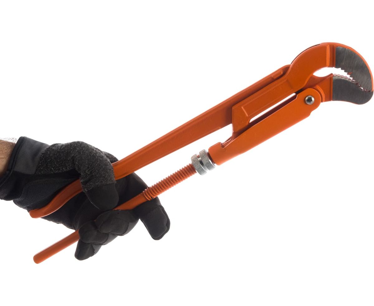 Трубный S-образный ключ (425 мм, 1.5) NEO 02-122 оснащен губками специальной формы, которая обеспечивает несколько точек соприкосновения с трубой.