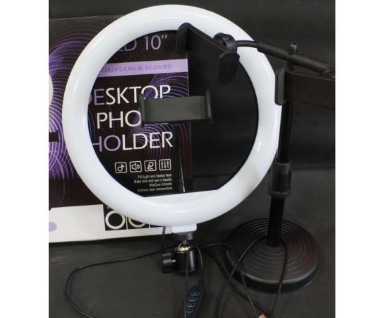 Кольцевая лампа CXB-260A со штативом-подставкой и держателем, диаметр 25см, в коробке (White)