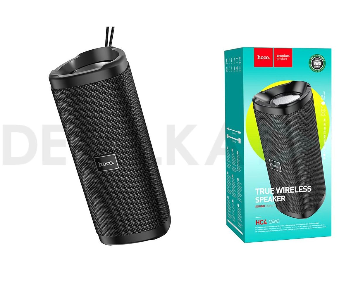 Беспроводная Bluetooth-колонка Hoco HC4 поразит любого своим чистым и громким звуком. Представленная акустика может воспроизводит музыку через Bluetooth, AUX кабель и даже microSD карты. Колонка имеет форму цилиндра, и внешне напоминает небольшую бочку. По бокам находится тканевая сетка, она закрывает динамики. Наверху расположен аккуратный и удобный пульт управления, сбоку веревочка для транспортировки аксессуара и небольшой индикатор работы.