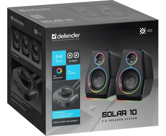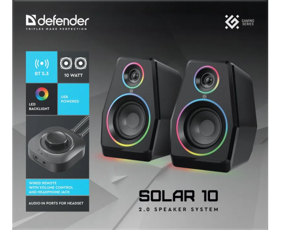 Акустическая 2.0 система DEFENDER Solar 10 10Вт, BT/Light питание от USB (65940)
