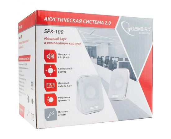 Gembird SPK-100-W, белый, 6 Вт, регулятор громкости, USB-питание